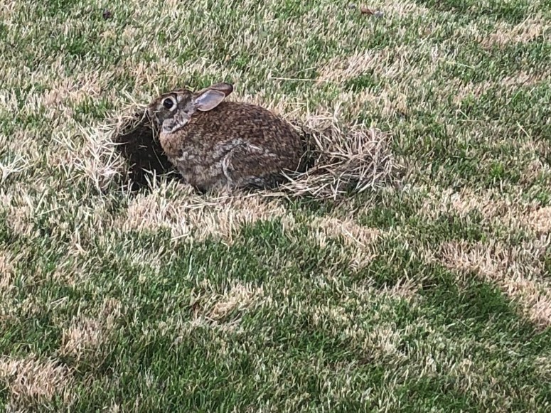 There was an unexpected diversion, this morning. Karl saw a rabbit on the front lawn, attacking the grass and furiously digging what looked like the beginning of a “rabbit hole”. It was a very strange occurrence.
