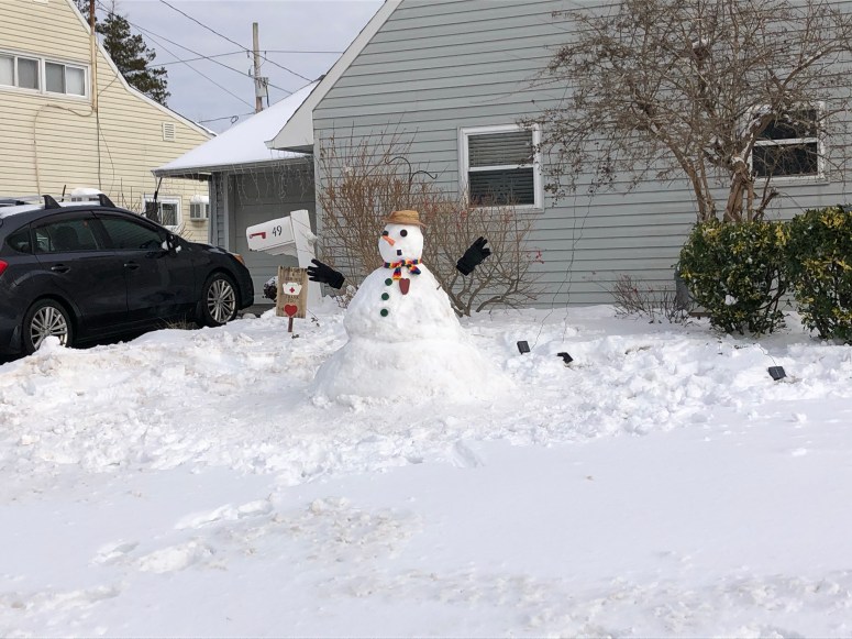 After an hour or so inside, I set myself up on the front lawn, to begin the task of building a Snowman. It had been awhile since, I last built one, but I knew just where “the kit” (hat, eyes, buttons etc.) was in the garage. When the kids were younger, this was a regular thing, whenever it snowed. The only kid around this time, was me! The snow was difficult to work with (could not be rolled into balls), but I stayed with it until a satisfactory product stood proudly in front of our house. It was not the best one I’ve ever made, but it was still the “Best on the Block” for that day! There were at least a couple of others, and I am not sure their builders’ knew there was a contest – Rookies!