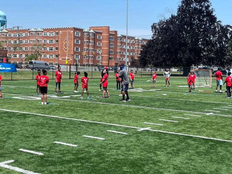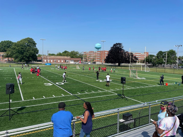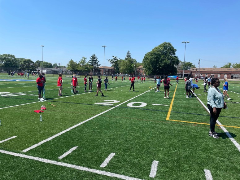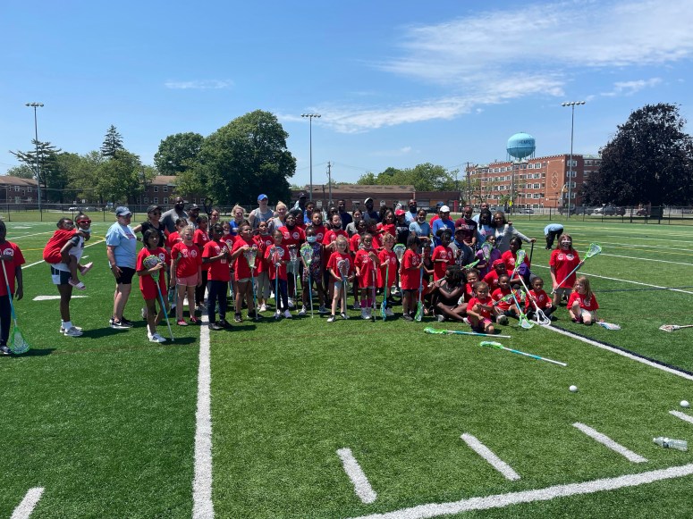 Bad weather washed out the final practices of the season for both the East Meadow Girls and the Hempstead Boys, on Thursday and Friday of last week. But by Saturday morning it we had bright sunshine and rising temperatures, as we prepared for the US Lacrosse, “Sankofa” Lacrosse Clinic at Lincoln Park in Hempstead. There were plenty of helping hands present and it was a good thing, considering that over 180 kids were registered and we expected walk ups, as well. A Free Clinic where you get a Free Lacrosse Stick, Free T-Shirt and a membership to US Lacrosse – sign me up! The registration process was not without some difficulties (a long line and more than a few “late registrants”), but it mostly ran pretty smooth.
