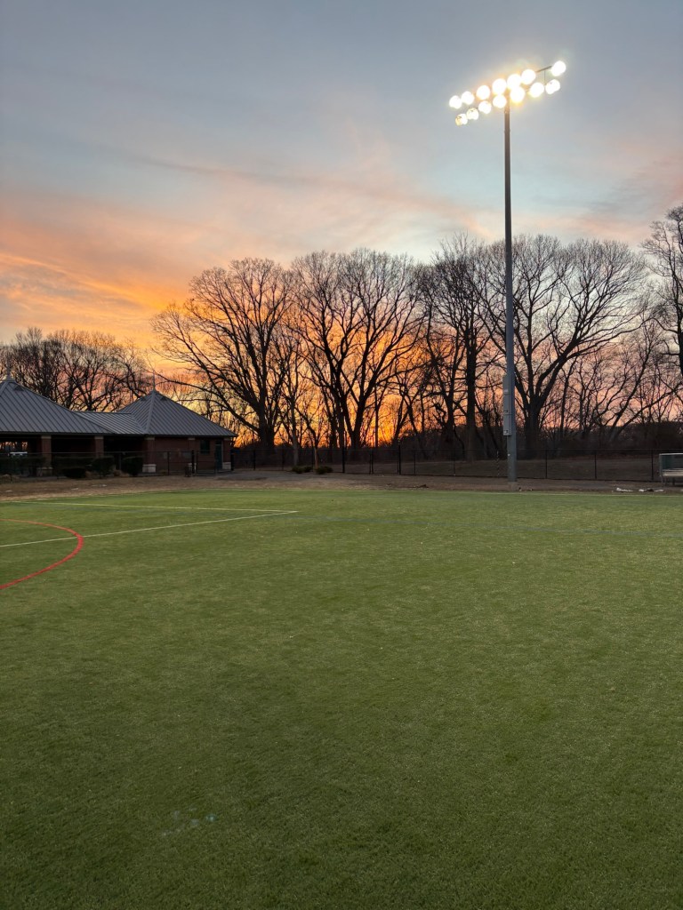 As we inched our way through heavy afternoon traffic, I tried not to think about the phone, focusing on the game, instead. Thankfully, we had left Molloy early enough that the traffic did not cause us to be rushing through our pre-game warm up. In fact, I thought we warmed up pretty well in their nice Stadium with its impressive Digital Scoreboard.
