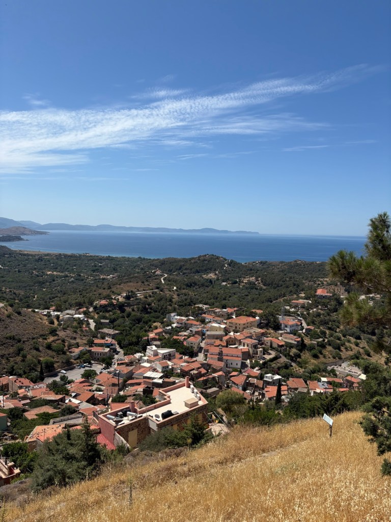 Our time in Santorini was brief, but sensational. After two days filled with scenic vistas, savory food and of course, those sunsets – we began the next leg of our journey. After an hour and a half delay, we were flying (Sky Express) first to Athens, where we boarded our connecting flight that took us to the island of Chios. Chios is substantially larger than Milos and Santorini and is located much farther to the east – in fact it is only an hour from Turkey, by Ferry. With a layover and a second delay, it took us most of the day for us to get to Chios, even though we were only in the air for a little more than an hour, both flights combined!