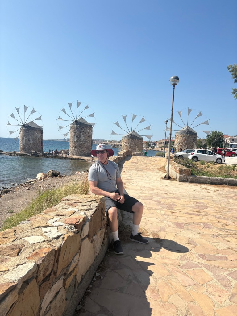 Agia Markella – a monastery located on the water next to a beautiful beach. Pyrgi Village – a beautifully preserved village with the ruins of Volossis Castle, on the highest ground. Lagkada Village – a classic Greek Fishing Village. Glaroi Beach – Crystal Clear Water, Tables, Umbrellas, Lounge Chairs and Waiter Service. Nea Moni – A Magnificent Monastery located at the top of a mountain, overlooking a valley that stretches to the sea (this is a UNESCO site of historical significance). Agia Dinami – Our favorite beach, recommended by my friend and our waiter at a restaurant, named Streat, which had delicious food. Mesta Village – a picturesque, medieval town. Mavra Volia – another great beach, this one has gray stones (black when wet). The Mastic Museum – Mastic is a tree that only grows in the south of Chios, its Resin is harvested and has been used in a great number of products for centuries. The Windmills of Chios – four amazing structures that are well maintained, just outside Chios Town, on the water. Castro – the original part of Chios Town that was once walled, and has the Castle of Chios, still standing within it.