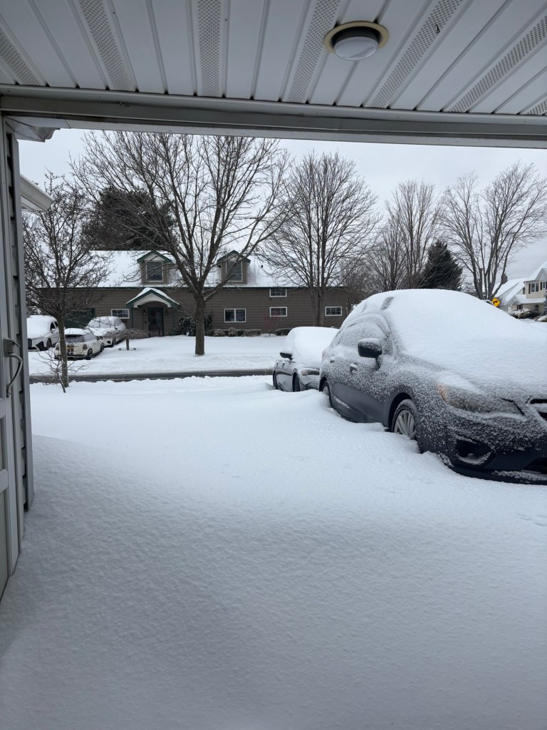 Last Sunday, it snowed heavily and without interruption, the entire day. With high winds causing snow drifts, it was not easy to tell, just how much snow was accumulating. By Monday morning, the snowfall had tapered off, and I estimated we had gotten over a foot of snow. Everything was cancelled, on Monday, (including Molloy, so no lacrosse practice) so there was plenty of time for snow removal.