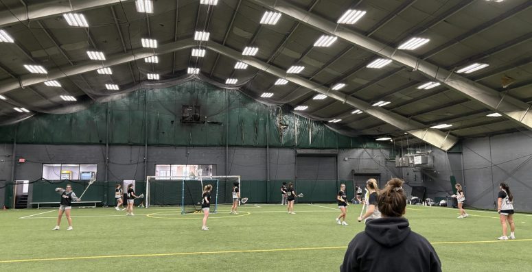 With our practice field still under snow, and temperatures only in the teens or low twenties, the Lady Lions were forced to practice indoors, for the first time in my four seasons with the team! Tuesday we did what we could in the Gym, but anyone who has ever attempted lacrosse practice in a Gym, will tell you, it is better than nothing, but not by much!