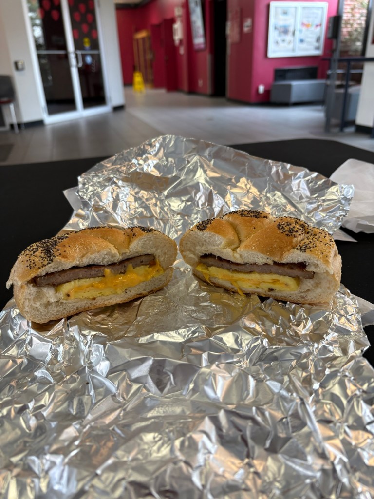 With a good week of practice in the books, I was eager for Saturday’s trip to Dominican. I treated myself to a “game day” breakfast from Ferring Delicatessen, which is near the Molloy campus. They make awesome egg sandwiches!